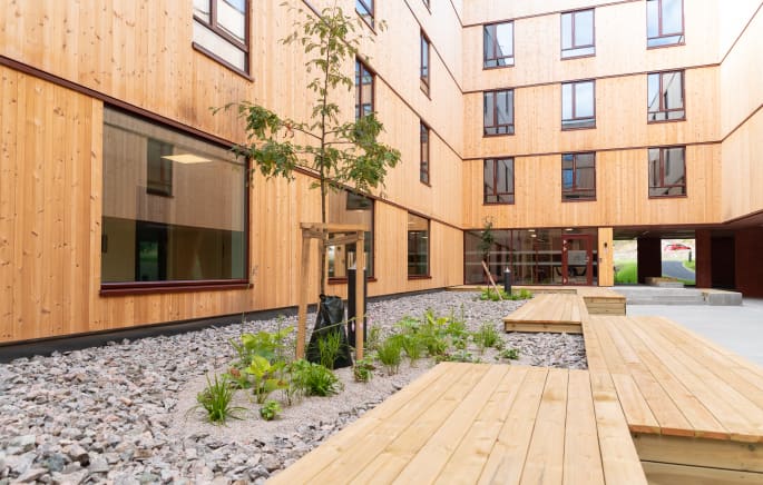The building at Gullbring in Bø houses 282 beautiful new student homes with lovely common rooms and a fantastic location close to campus.