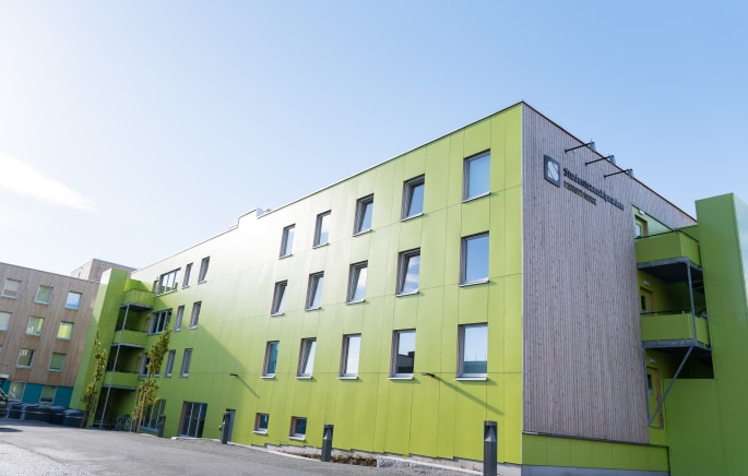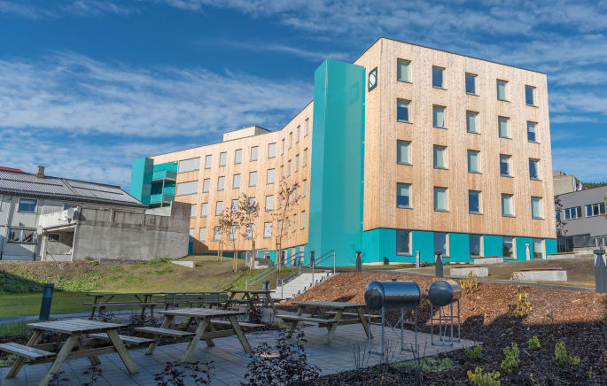 The student accommodation is located on the opposite bank of the river from Papirbredden Knowledge Park. With the Ypsilon bridge over the river, residents only have a few minutes' walk to campus. Read more about Campus Drammen at USN.