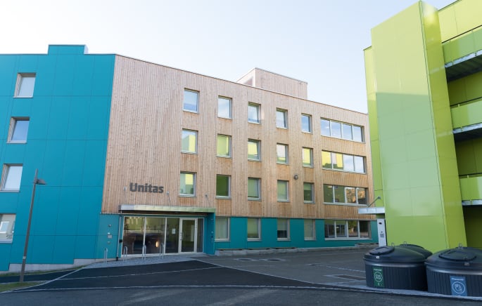 There are a total of 243 accommodation units in three buildings: Tutus (built in 2012), Domi and Unitas (built in 2017).